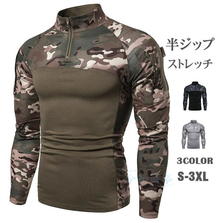 商品情報 商品名 ロンT サバゲー ミリタリー Tシャツ メンズ ハーフジップ ハイネックTシャツ 長袖Tシャツ 服装 迷彩服 上 戦闘服 コンバットシャツ 自衛隊 サバイバルゲーム 装備 コンバット 迷彩 コスプレ タクティカTシャツ スポーツ キャンプ トップス 秋服 春服...